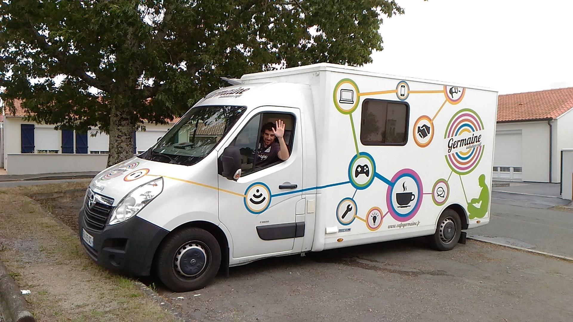 Pour aller à la rencontre des jeunes, la Fédération des centres sociaux et socioculturels de Vendée a créé le camion Radio-Germaine : terrasse itinérante qui s’ouvre sur les places des villages vendéens, anime l’espace public et invite les jeunes à venir échanger.
